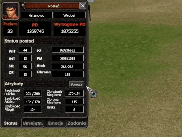 Za pomocą klawisza "X" bądź przycisku w szczegółach postaci gracz może sprawdzić wartości poszczególnych bonusów